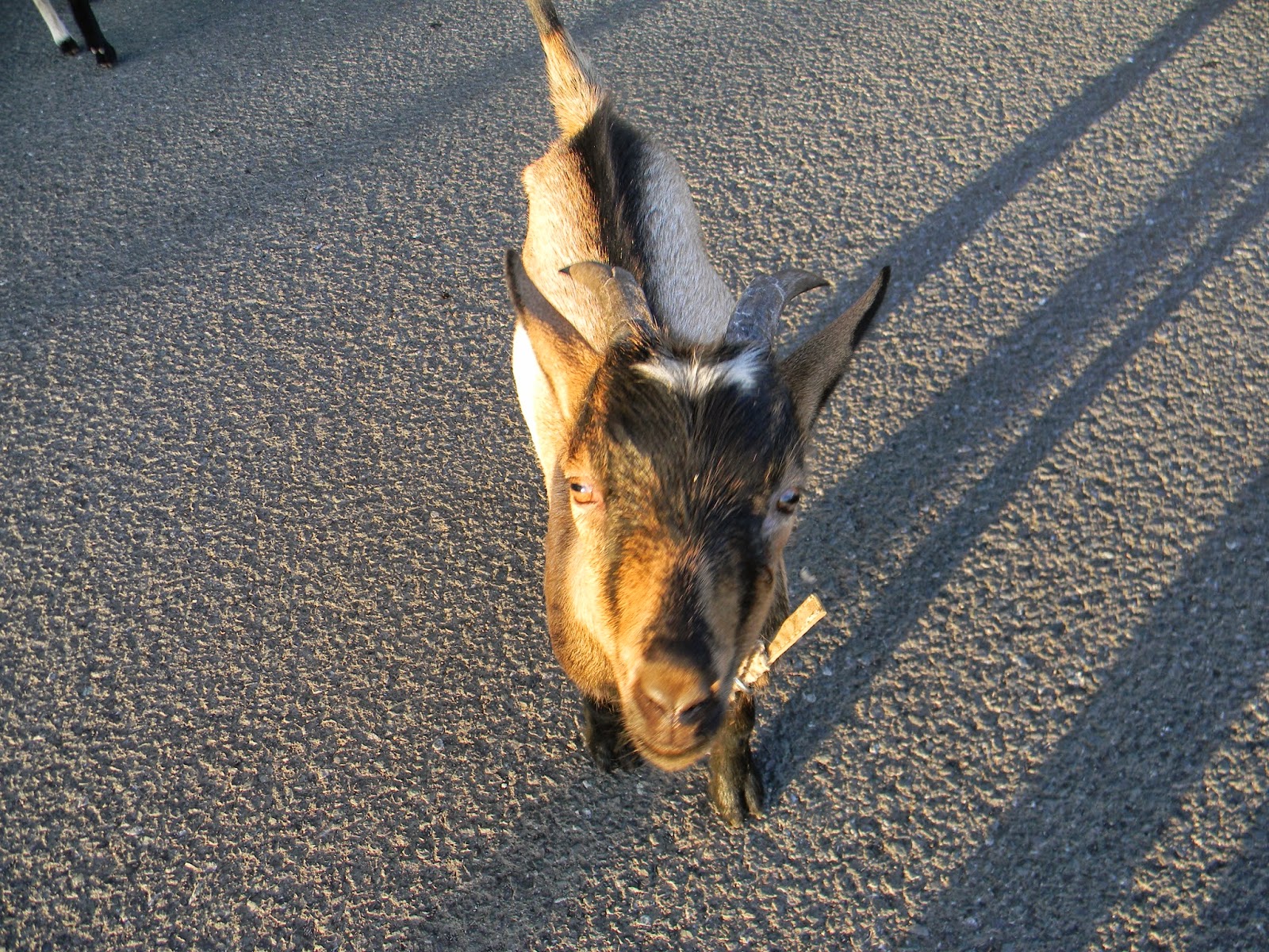 Yesterday we went out to the dock to catch the sunset and found an interesting sight. We happened upon a young boy walking his two baby goats. It was quite a scene watching him attempt to control and command those babies when they had strong wills of independent thought. All THEY wanted to do was examine and make friends with us. Actually it was quite a good experience for me. I have to confess that for some unknown reason I have always been timid and sort of afraid of goats. But these little guys wanted to play and be petted just like my fuzzy dog boys back home.